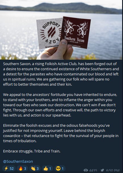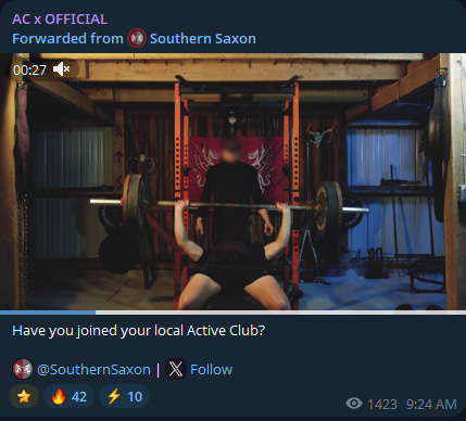 This image is from the official Active Club channel, and a core ideological source in the Active Club framework. Here, it is reposting a video from the Southern Saxon channel.