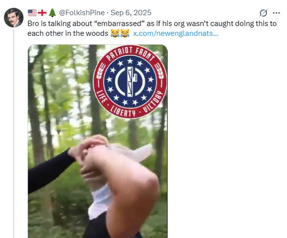 There is plenty more, but you get the drift. The essence of this dispute is that members of Folkish Vanguard were criticizing the practices of Patriot Front. A Patriot Front member connected to leadership took them to task.