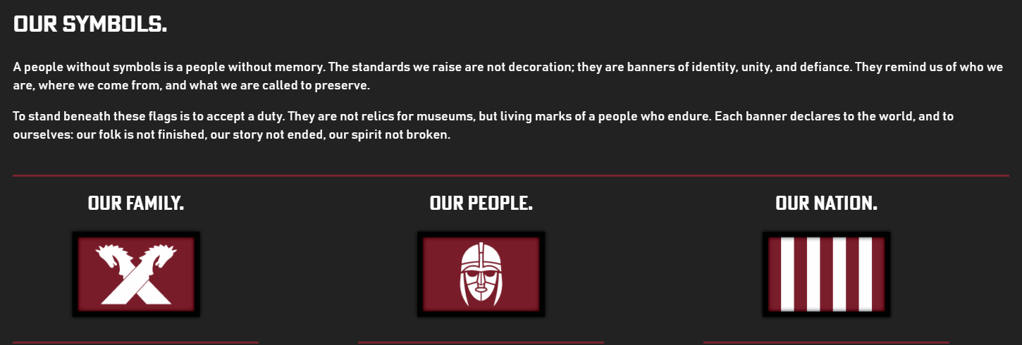 Their language and symbolism are strategically simple. Clear color schemes, and historically rooted symbols that create a unique identity. It is easy to understand, easy to recognize, and therefore easier to belong to. At the heart of this strategy, that you can see across white supremacist groups, is a push to offer community and belonging. Are you a white man? Do you accept our brand of racism? Then you have a family. It’s an effective strategy that preys on disaffected young males, and the Folkish Vanguard is good at it, offering a clean branding kit.